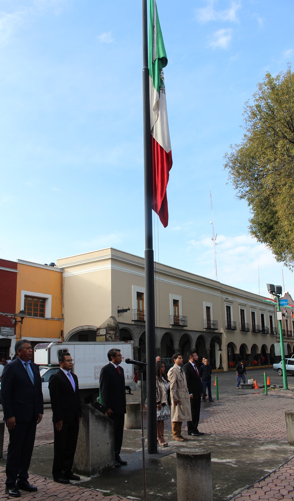 Diputados de la LXII Legislatura Local, rindieron en la Plaza de la Constitución de la Ciudad de Tlaxcala, el homenaje semanal a la Bandera de México.
